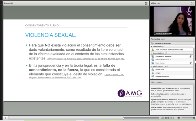 El propósito del seminario web fue fortalecer el conocimiento, en la comunidad jurídica, sobre la cultura de la violación para la comprensión de la victimización por medios sexuales contra las mujeres en los procesos judiciales.