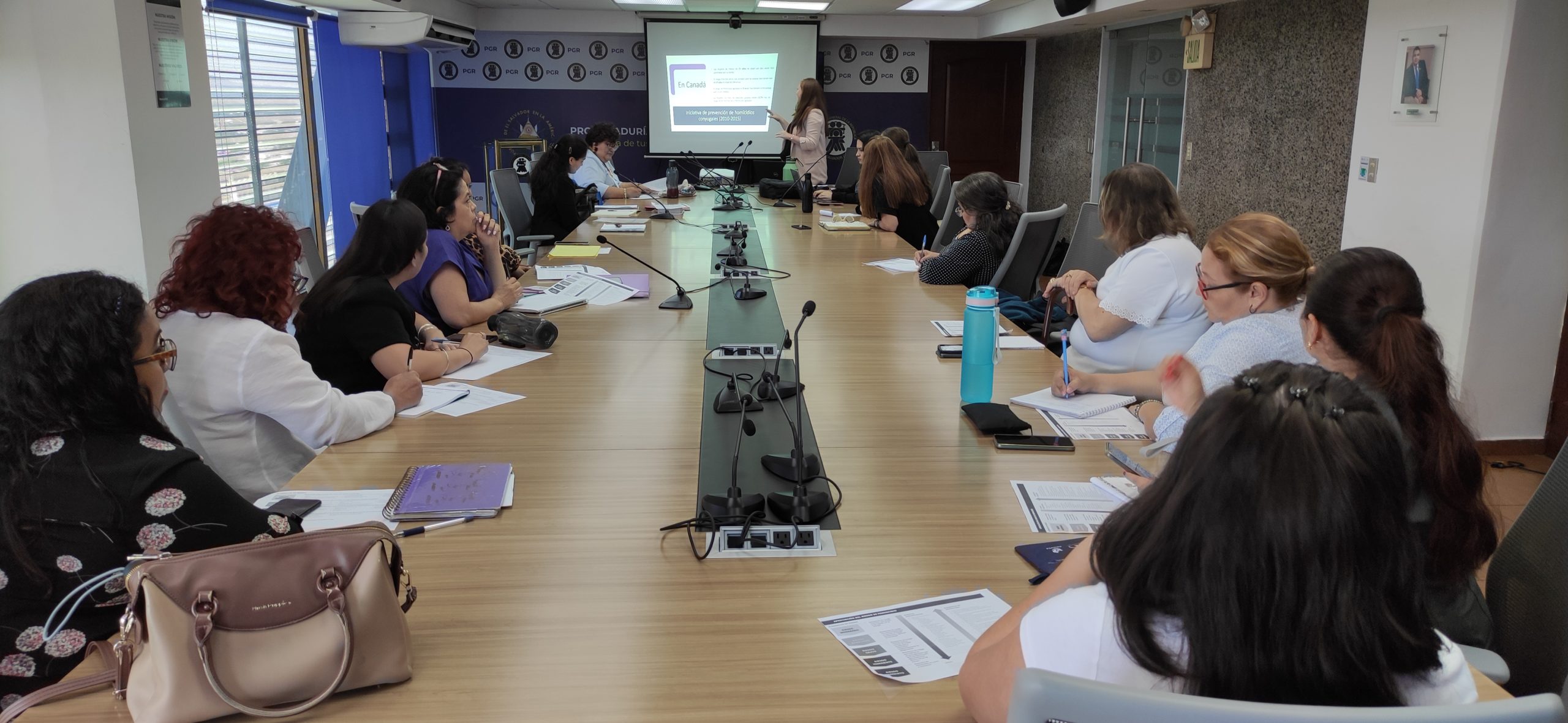 El conversatorio se desarrolló con personas abogadas de la Unidad Integral de Atención Especializada para las Mujeres y de la Procuraduría Especializada para las Mujeres de PGR.